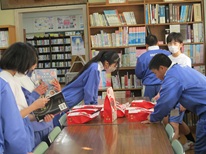 図書福袋 2026年1月19日 最終更新日時 : 2026年1月19日 kumagaya_edit 図書委員さんが選んだ3冊を福袋に入れて、今日から貸し出しをしています。昼休みの図書室には多くの1年生が集まっていました。どの福袋にしようかと、図書委員が書いた福袋の表書き(中身の本の紹介)をじっくり読んで選んでいました。