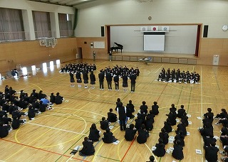 生徒会本部役員の紹介、部長会応援団による「がんばれエール」、校歌隊及び2,3年生全員による「校歌披露」など、それぞれの内容で上級生がいきいきと活躍していました。