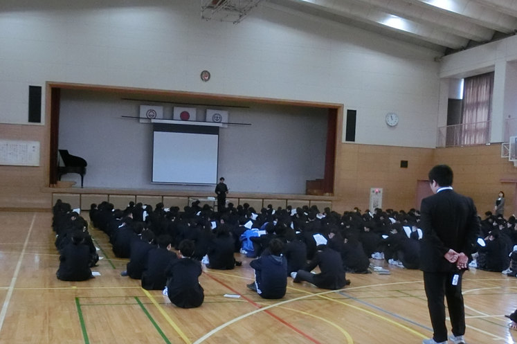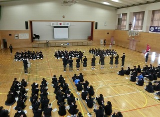 オリエンテーションでは、年度のはじめとして「大原中学校での学校生活」について全校生徒で確認しました。