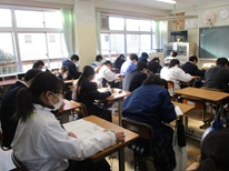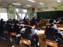 今日は3年生の私立受験の中心日です。本校でも多くの生徒が受験にいきましたが、残っている生徒も一言もおしゃべりすることなく、集中して自学自習していました。また2年生は英語のテスト(GTEC)を行いました。4つの英語の技能をテストするものです。専用タブレットも使い真剣に行っていました。