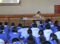 6時間目にはふれあい講演会をおこないました。本校の卒業生であり、イラストレーターの唐崎さんをお招きし、「アートが社会にできること」と題してお話をしていただきました。熊谷のイラストマップをいろいろ手掛けてくださっています。