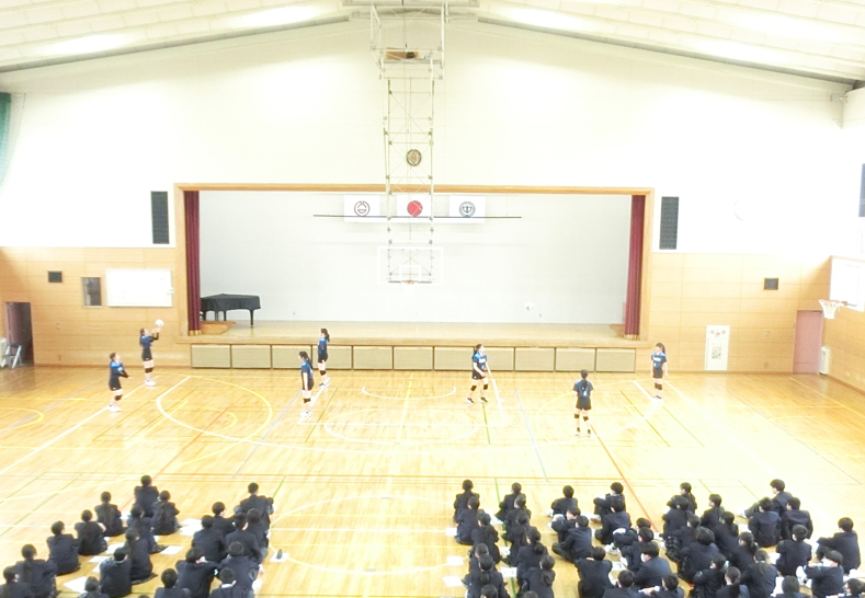 実際にプレーしたり、笑顔で呼びかけたりする2,3年生を1年生はじっくりと見ていました。