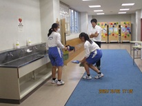 明日の音楽会に向けて、実行委員を中心に体育館の部活動の生徒と一緒に放課後準備を行いました。今まで作成してきた装飾やスローガンを貼り、椅子を準備し、掃除を行いと頑張って準備したので、明日が楽しみです。明日の成功を暗示しているようなきれいな夕焼け空でした。