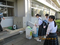 アルミ缶とペットボトルキャップの回収日でした。先月からペットボトルキャップは昇降口に入れ物を用意し、随時入れておけるようにしましたが、やはりAPC回収日に持ってくる生徒が多いです。昨日、今日とボランティア委員さんが早く来て回収してくれました。